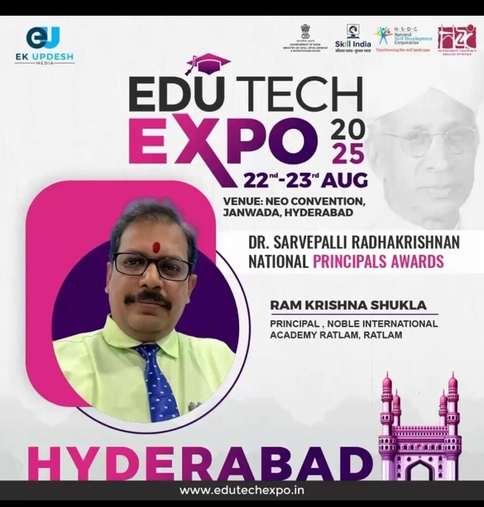 पाटीदार समाज न्यास रतलाम द्वारा संचालित नोबल इंटरनेशनल एकेडमी के प्राचार्य श्री रामकृष्ण जी शुक्ला को डॉ सर्वपल्ली राधाकृष्ण राष्ट्रीय प्राचार्य सम्मान के लिए नामांकित किया गया है, edutech expo 2025 के अंतर्गत यह सम्मान हैदराबाद में आयोजित गरिमामय कार्यक्रम में दिया जावेगा, पिछले वर्ष भी श्री शुक्ला को राष्ट्रीय प्राचार्य सम्मान से भोपाल में सम्मानित किया गया था, पाटीदार समाज न्यास एवं नोबल इंटरनेशनल एकेडमी परिवार श्री रामकृष्ण शुक्ला को बधाई एवं शुभकामनाएं प्रेषित कर उज्जवल भविष्य की कामना करता है